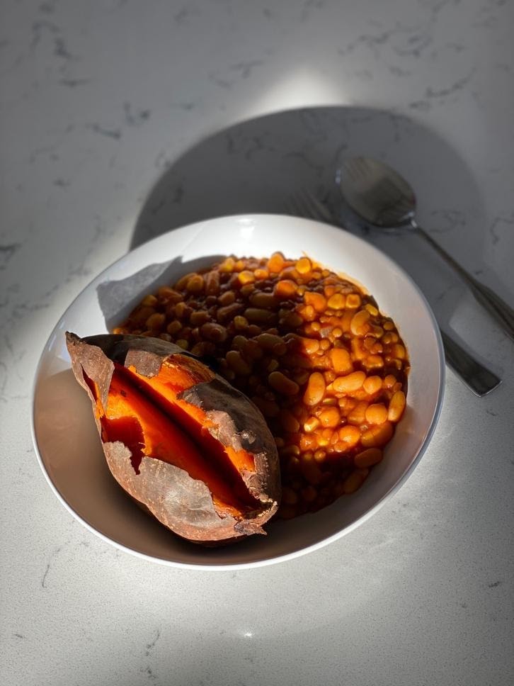 With the weather getting colder and the days greying, this chili is just the right thing to bring a little comfort. It’s the perfect opener for the Halloween season! While it is a slightly time-consuming recipe, it’s a great meal to share with your flatmates, friends or a great option for meal prep to enjoy throughout the week. This dish is inspired by the ‘traditional’ chili sin carne, varying from the original recipe as I added chickpeas and lentils, making it very protein packed. This dish can be enjoyed with various other foods, such as nachos, in wraps, just with plain rice or, like in this case, with sweet potato. To me it is the perfect thing for a cosy dinner or a quick lunch. Feel free to add other ingredients or seasoning to this dish. That is the beauty of cooking, it is up to you of what you want to include. The chili recipe serves 4 to 5 people.