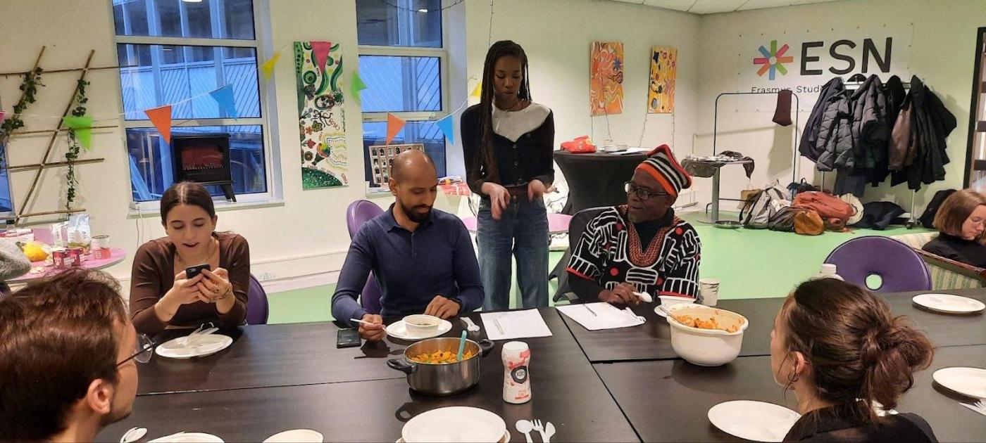 Just as soon as the timer rang, the cooking session gave way to judging time. To assess all four dishes, the Culinary and Africa committees invited one teacher and one tutor from the Africa area specialization BAIS program: Walter Nikwi and Amza Adam. One dish following the other, special guests tried the maafe of all four teams -”Luana”, ”Idiot Sandwiches”, “Wapishi”, and “Fantastic Forks”. While judging took place, all participants also got the opportunity to sit down and taste the result of their hard labour, which – I must admit – was really delicious and impressive.