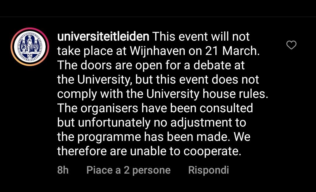 I would like to conclude by quoting Dr. Zbeidy’s article: “Why should academics continuously be pushed into showing their ‘neutrality’? Isn’t the university where revolutions and social change have often started? Why should standing up for a cause be a stain on you as a professional? Or maybe the question should be – why does standing up for Palestine become a stain on your reputation? And how is this tied to global inaction in the face of Israeli aggression and the dehumanization of Palestinians?” Indeed – I too believe that the University needs to be a source of social change, a place where young people, through empathetic and critical discussion, manage to bridge different opinions in the name of a greater, societal, good. In order to do this, students themselves need to be free to decide what discussions can be allowed and what cannot, what is apolitical and what is not. We, students, have the capability of deciding for ourselves whether a topic is ‘too sensitive’, we have the ability to decide whether a panel discussion is a ‘safe space’ for everyone to voice their opinion. We, students, must be allowed to assess on our own whether a panel discussion constitutes a real security concern for the student body. I suggest that the only security concern, here, is the fact that the content of the panel discussion threatens the political views of the Board of Leiden University, or of its associates. We, students, must unite and stand against the politicization of Crimes Against Humanity, and against the instrumentalization of the concept of ‘academic freedom’ for political purposes by Leiden University.